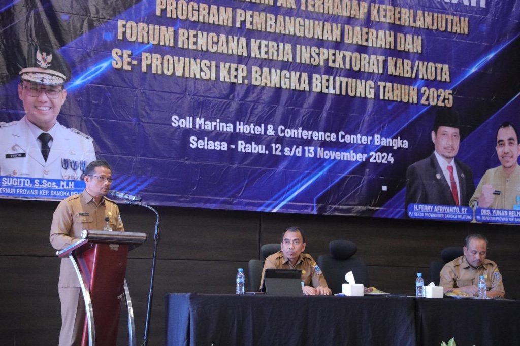Hal ini disampaikan Penjabat (Pj) Sekretaris Daerah (Sekda) Provinsi Kepulauan Babel Fery Afriyanto saat membuka Rapat Koordinasi Daerah (Rakorwasda) dan Forum Rencana Kerja Inspektorat Kabupaten/Kota se-Provinsi Kepulauan Bangka Belitung (Babel) Tahun 2025 yang berlangsung di Soll Marina Hotel, Selasa, (12/11/2024).